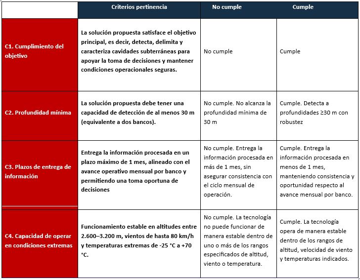 Adicionalmente, la compañía ha revisado tecnologías emergentes como tomografía de muones y diversas variantes de radar avanzado, aunque sin implementaciones formales en terreno.
