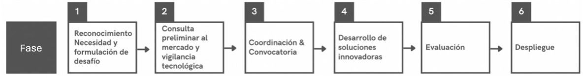 2. Se realiza una Consulta Pública al Mercado (CPM) para obtener información sobre soluciones disponibles en el mercado, y los TRL de soluciones cercanas, condiciones de propiedad intelectual, costos y plazos estimados e interés de empresas en participar en el proceso de SCI. La CPM permite ajustar y preparar las bases para la compra de innovación. Se definen los criterios de adjudicación, etapas, el número máximo de empresas que se va a financiar en cada etapa, plazos y presupuesto disponible.